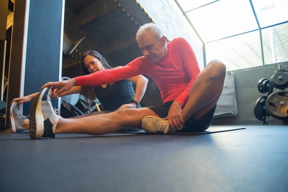 Dynamic and static stretching were integral parts of his routine‚ enhancing flexibility‚ range of motion‚ and preventing muscle imbalances. These exercises‚ frequently outlined in training PDFs‚ were performed both before and after workouts to prepare the body and promote recovery.